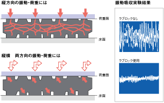 ベルギーで開発された防振ゴム〈ラブロック〉。独創的な発想により、高い防振性能を実現。